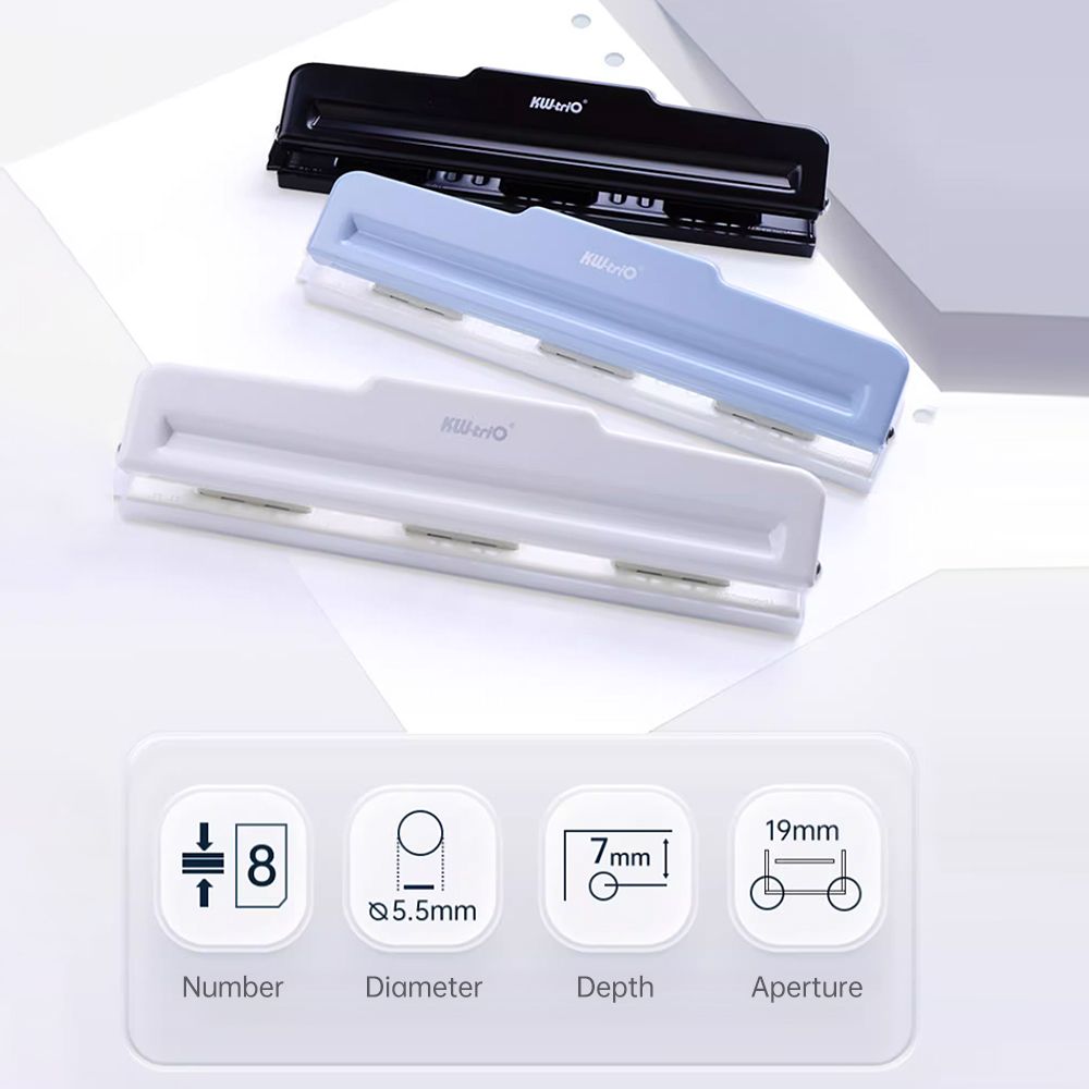 ▶ Able to easily and accurately punch through 8 sheets of paper at a time, creating precise 5.5mm holes with just the push of a button.