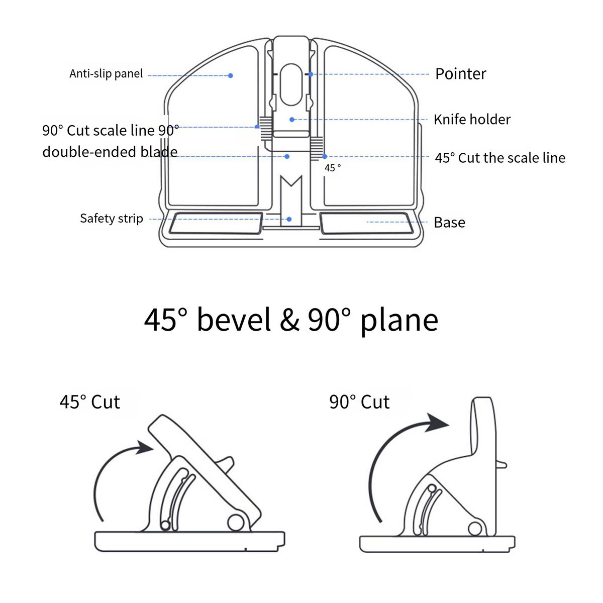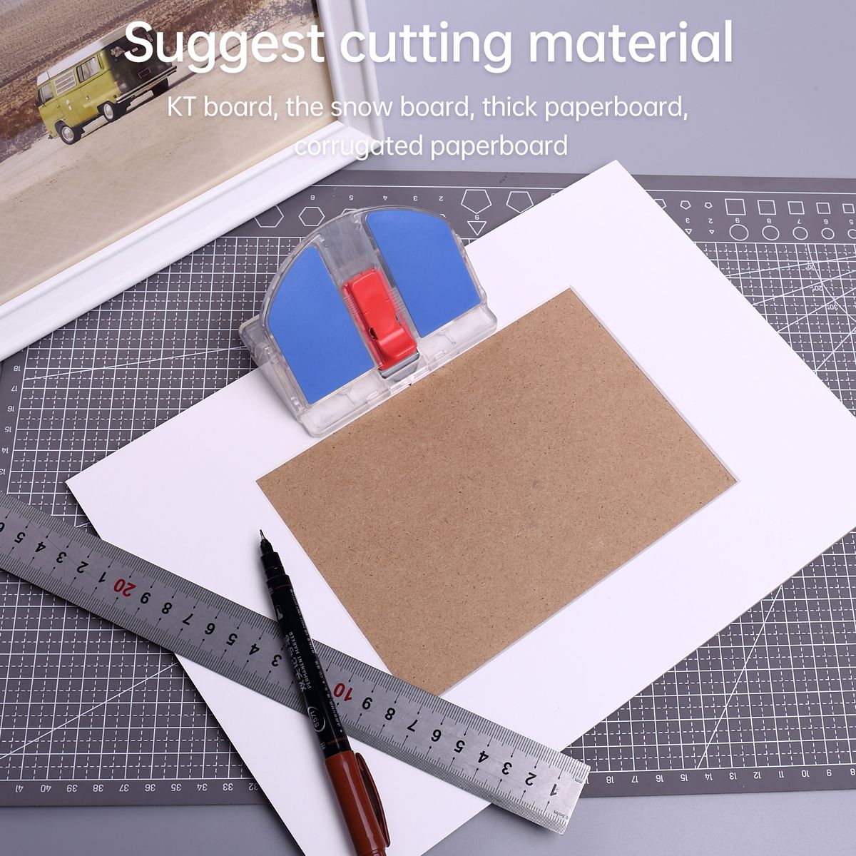 Versatile Cutting Tool: 2in1 paper trimmer - design for cutting on a 45° inclined surface or a 90° flat surface. This cutting is designed to support the cutting of various materials such as cardstock, KT board, foam board, and corrugated paper board. It is perfect for DIY framing projects.