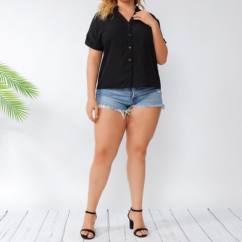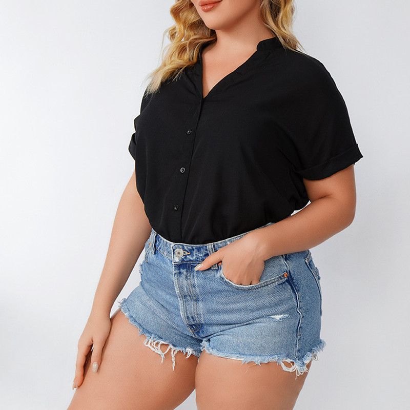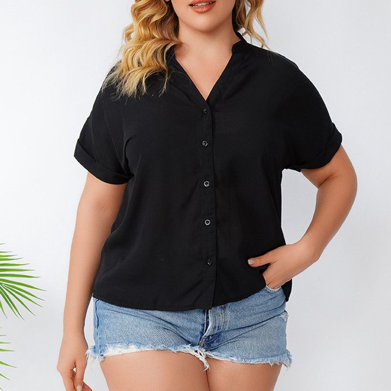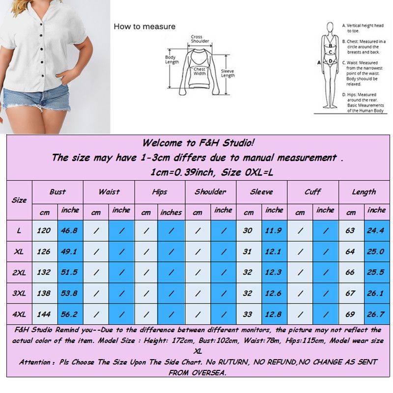 Size: L, XL, 2XL, 3XL,4XL Model Size FYR: Height: 171cm, Bust:106cm, Waist:76cm, Hips:120cm, Model wear size XL ❤This is a polo neck short sleeve big size tops plus size blouse !!❤Style:Polo Neck Short Sleeve Plus Size Blouse Big Size Tops. Please note that slight color difference should be acceptable due to the light and screen.What You Get:1 x Blouse. FQA:1. Q: Why the item haven't shipped out? A: After you place the order, We will ship the item to the rehmie warehouse within 48 hours as soon as possible, and then rehmie warehouse will send the item to you. If you find the logistics status is"to be shipped", it may be because the rehmie warehouse has not yet been shipped. Please don't worry. 2. Q: How can I choose the size? A:Please refer to the size chart and select the appropriate size according to your actual size.If you are not sure what size to choose, please call me. 3. Pls take note that all the clothes can not be returned or exchanged.4. All dimensions are measured by hand, there will be 2-3cm reasonable deviations. (1cm=0.39 inches). Pictures are only samples for reference. Due to the differences in monitor settings, the colors shown in the photograph may not correspond 100% to those in the items themselves. 5.For transportation needs, the cloth that you've received will have a fold phenomenon. Please don't worry, this fold situation will disappear after the first time you clear or ironing.