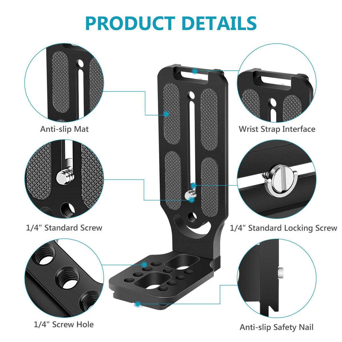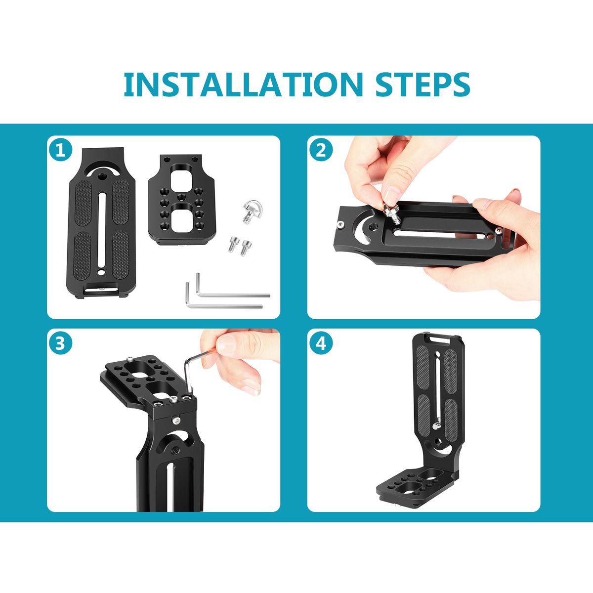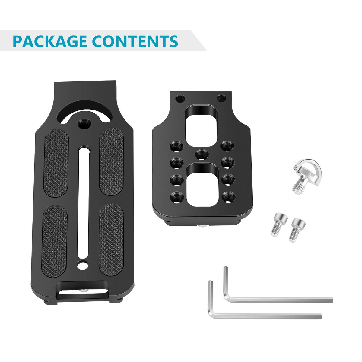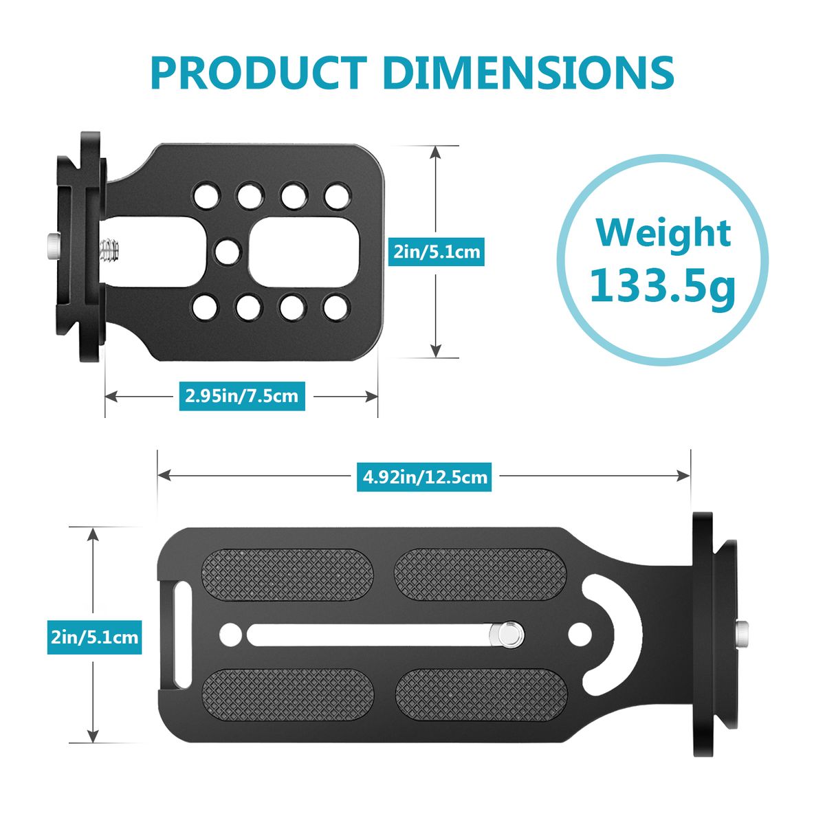 STONG MATERIAL: Made of aviation aluminum alloy with highly-precise CNC technique, corrosion resistant and super durable, each side of the 2-piece plates equipped with an anti-slip nail that can work with the U-shaped grooves of the clamp and protect the camera