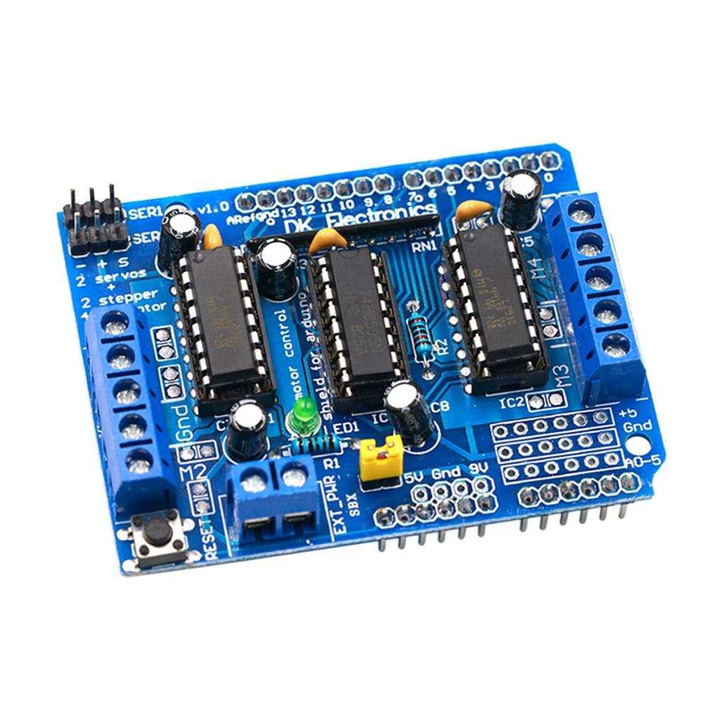 4 H-Bridges: L293D chipset provides 0.6A per bridge (1.2A peak) with thermal shutdown protection, 4.5V to12V