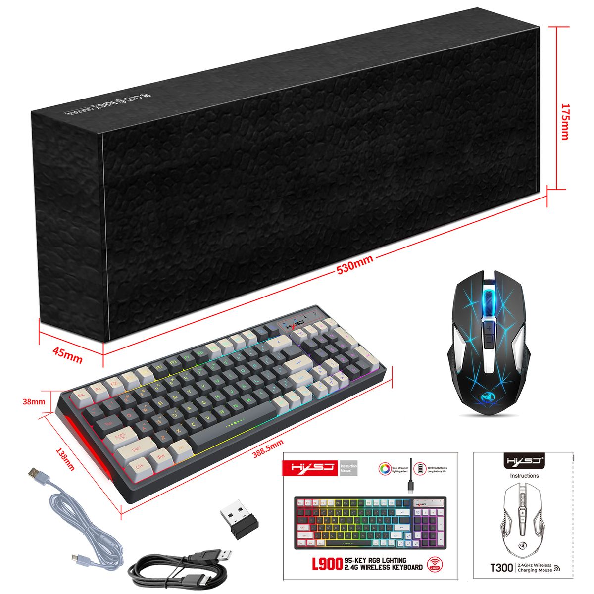 - Keyboard size: 38.85 * 13.8 * 3.8cm /15.3 * 5.43 * 1.5in
