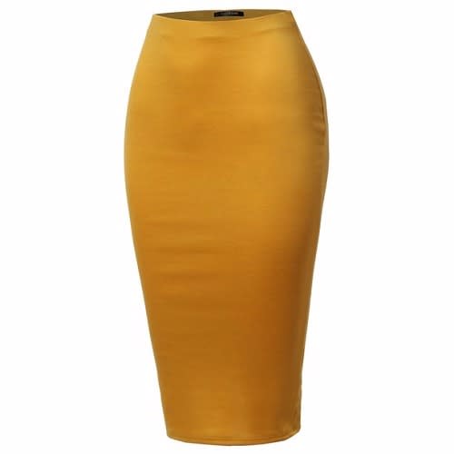 Ladies high-waist midi pencil slim skirt is for all trendy women. It is stretchy and slim fit. It can be worn casually on cropped tops,tank tops, sweatshirts, t-shirts and formally on shirts.