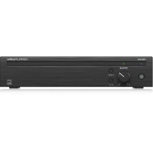 Lab.Gruppen CA1201 120W Commercial Amplifier with Energy Star CertificationLab.Gruppen CA1201 120W Commercial Amplifier with Energy Star CertificationThe CA1201 120-Watt Commercial Amplifier provides the perfect solution for commercial and industrial applications requiring great sounding distributed audio coupled with power conservation and reduced operating expense. Capable of delivering high-quality sound over both Low-Z (4/8 Ohm) and High-Z (70/100 V) loudspeaker configurations offering extreme flexibility on every channel. The CA1201 is easy to install and operate & ndash; even for non-technical personnel. Simply put, the CA1201 is ideal-suited for bars & restaurants, retail destinations, hotels, corporate, education or other venues needing background music and/or a public address system.