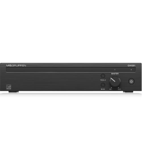 Lab.Gruppen CA1201 120W Commercial Amplifier with Energy Star CertificationLab.Gruppen CA1201 120W Commercial Amplifier with Energy Star CertificationThe CA1201 120-Watt Commercial Amplifier provides the perfect solution for commercial and industrial applications requiring great sounding distributed audio coupled with power conservation and reduced operating expense. Capable of delivering high-quality sound over both Low-Z (4/8 Ohm) and High-Z (70/100 V) loudspeaker configurations offering extreme flexibility on every channel. The CA1201 is easy to install and operate & ndash; even for non-technical personnel. Simply put, the CA1201 is ideal-suited for bars & restaurants, retail destinations, hotels, corporate, education or other venues needing background music and/or a public address system.