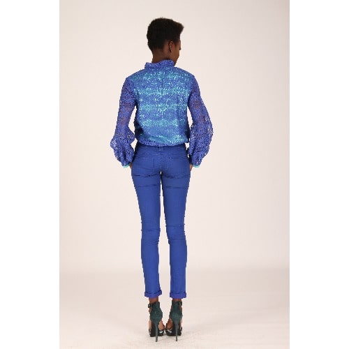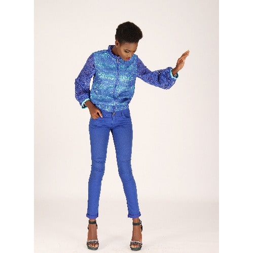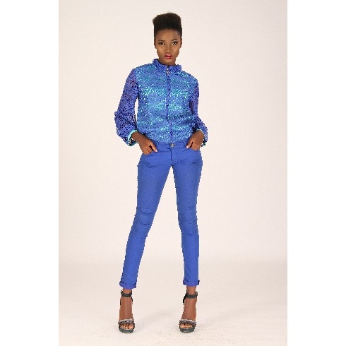 Meet the new cool you in this wow-piece! Our blue lace bomber jacket with a mint green lining is sure to get you more than a few admiring looks. Be on trend for the season. Wear it with jeans for off-duty glam, or use to add edginess to your favourite dress. With a zip to the front and all-over lace finish, pare it back with a simple cami and denim for casual-cool or wear nothing under and zip up to where you like for a razor-sharp cool girl suave. You could also wear it with a pencil skirt or with Xtamaliy's organza naked bottom panel skirt or with our high waist leggings.