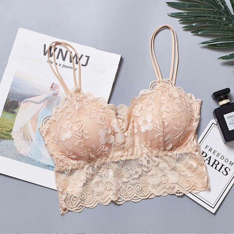 1X Sujetador de encaje Push Up sin aros para mujer, Bralette elastico, ropa interior, lenceria de copa completa, blanco, negro, azul, 2020