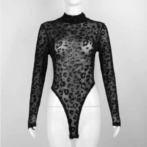 Buy Lace Mock Neck Long Sleeve Bodysuit- Black in Nigeria
