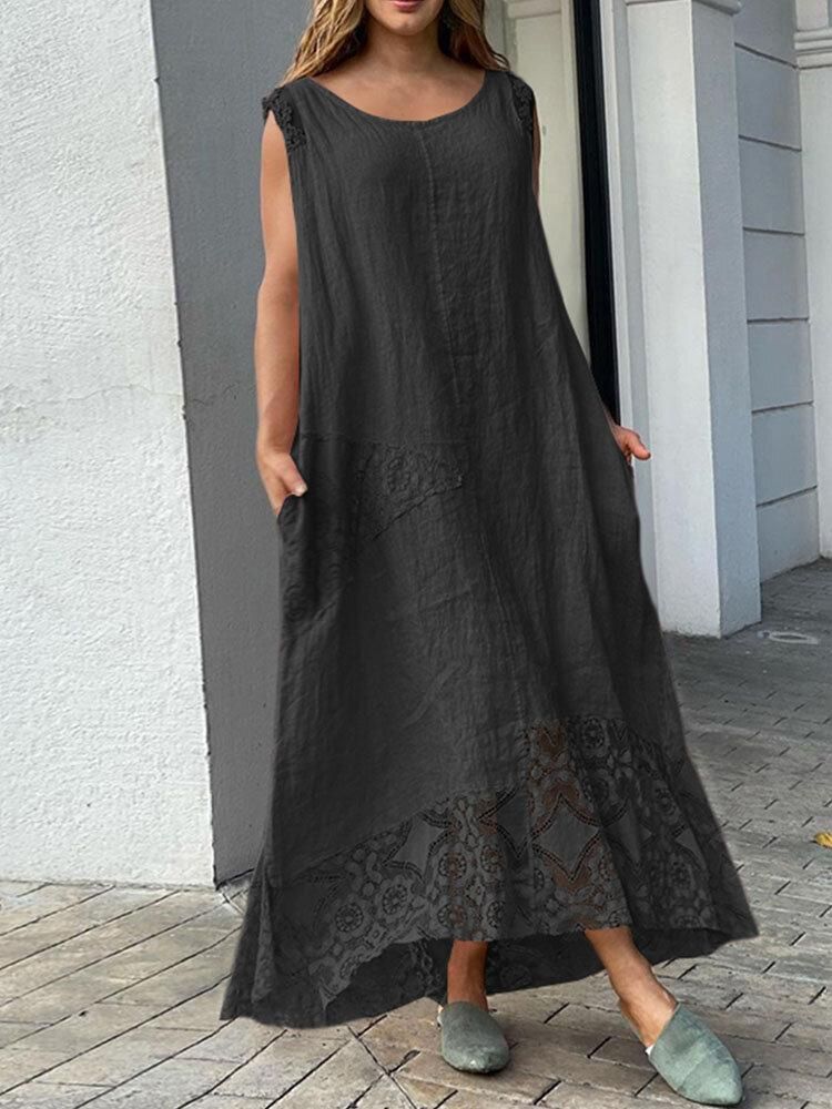 Buy Lace Patchwork Pocket Round Neck Sleeveless Maxi Dress in Nigeria