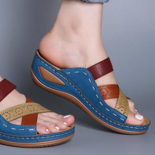 Buy Ladies AALP Sandals Wedge Heels Large Size Flat Sandals And Slippers-Sky Blue in Nigeria