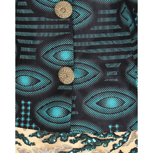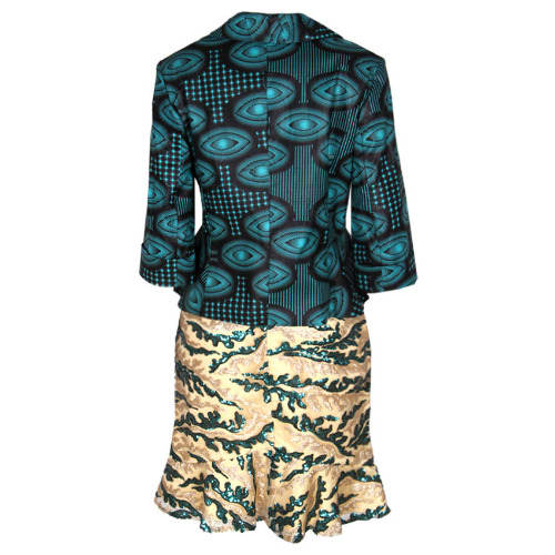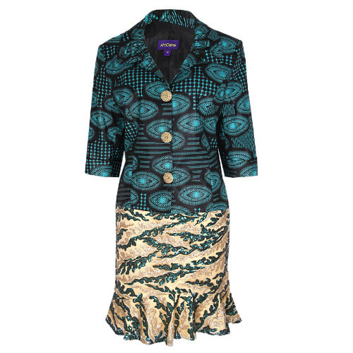 Buy Ladies Ankara Skirt Suit With A Gold Button - Green & Black - Lss-4627 in Nigeria