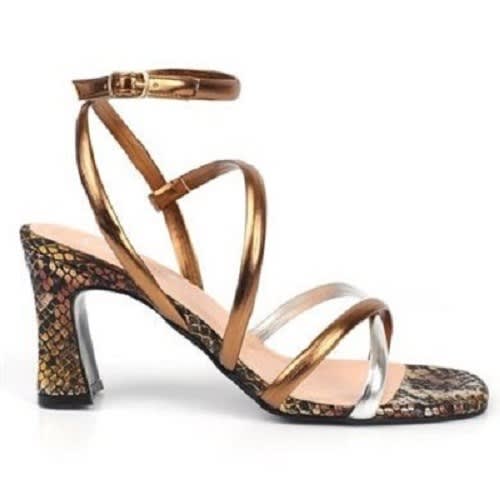 Buy Ladies Ankle Strap Heeled Sandals- Gold in Nigeria