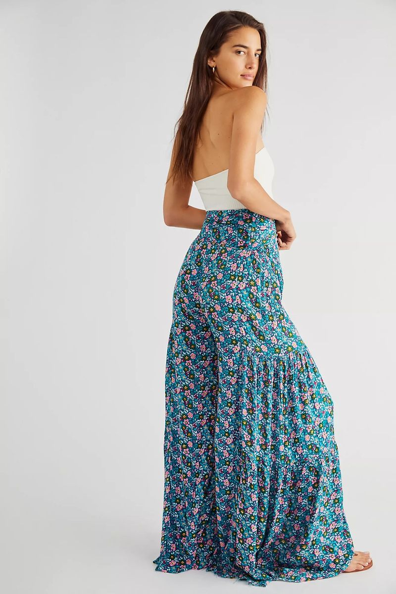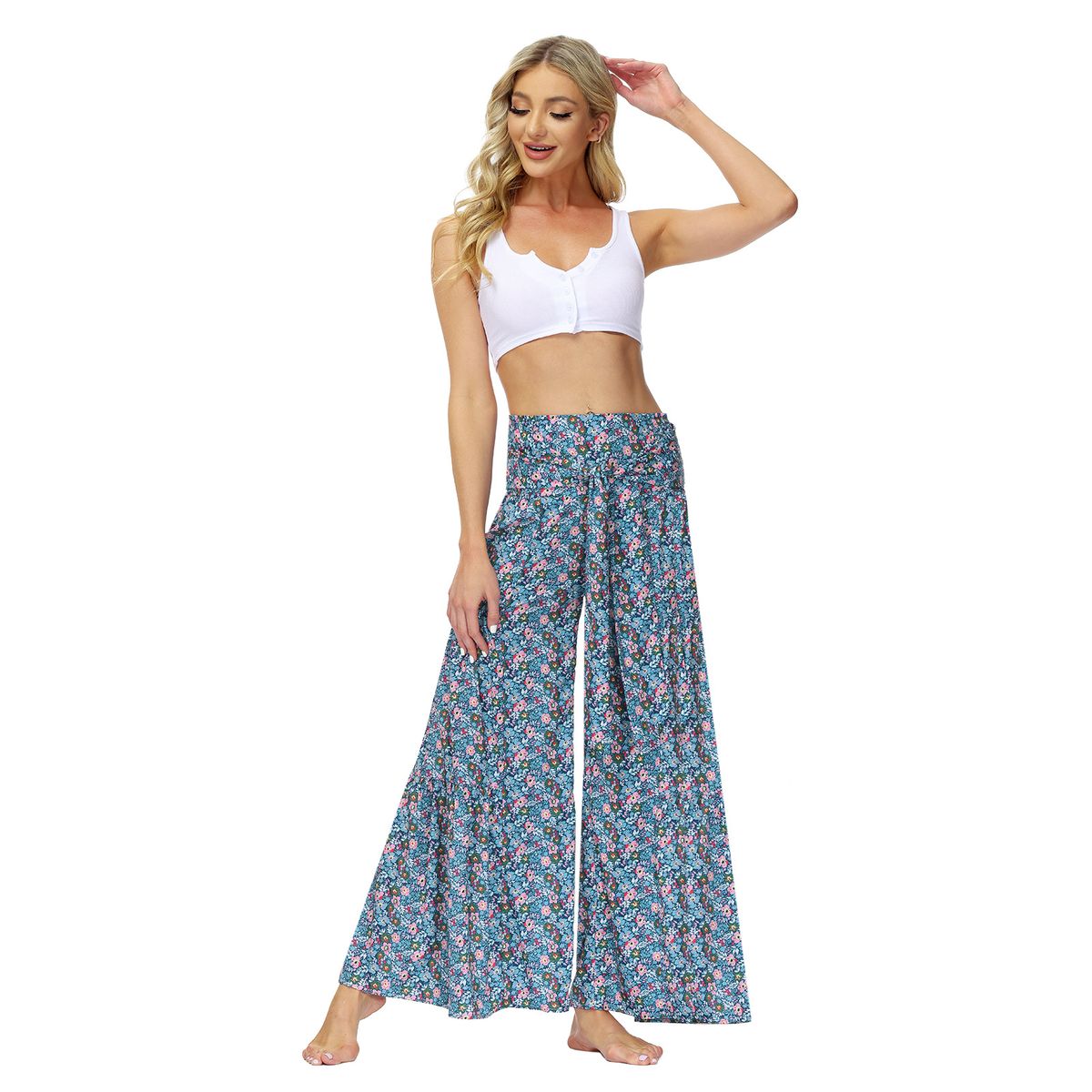Buy Ladies Beach Wide Leg Pants Tie Pants Digital Printing Loose Casual Pants -Blue in Nigeria