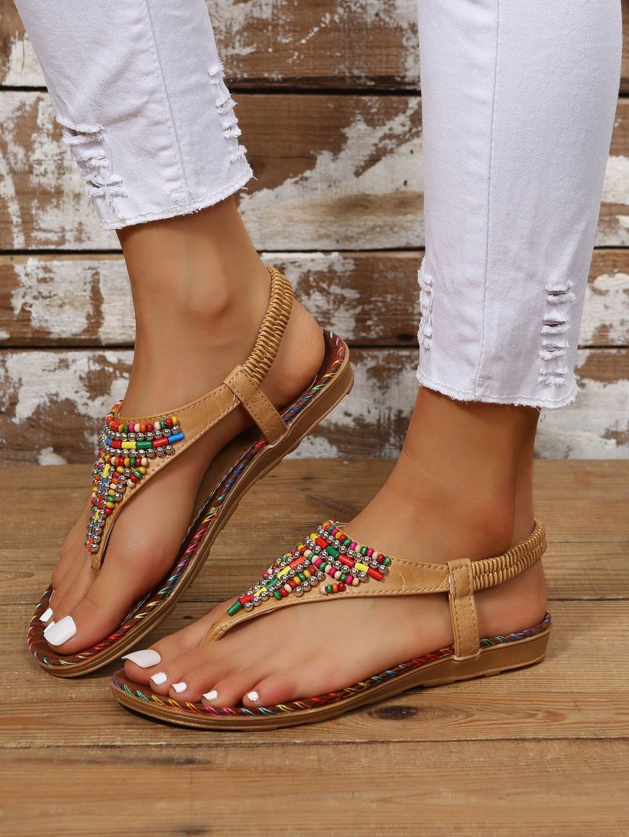 Buy Ladies Beaded Flat-soled Comfortable Casual Flip Sandals in Nigeria