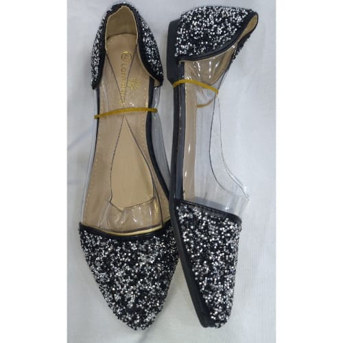 Buy Ladies Bellies Diamante Flat Transparent Pointed Black Shoe in Nigeria