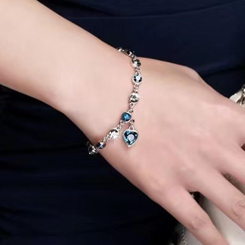 Buy Ladies Blue Diamond Bracelet Love Bracelets Wrist Chain Jewelry Women's Gift Silver in Nigeria