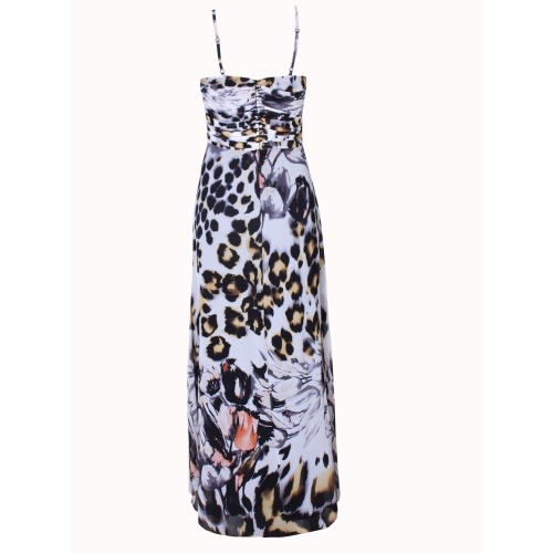 Leopard Print Maxi Dress - Women's Deep V Neck - Single-breasted Dress