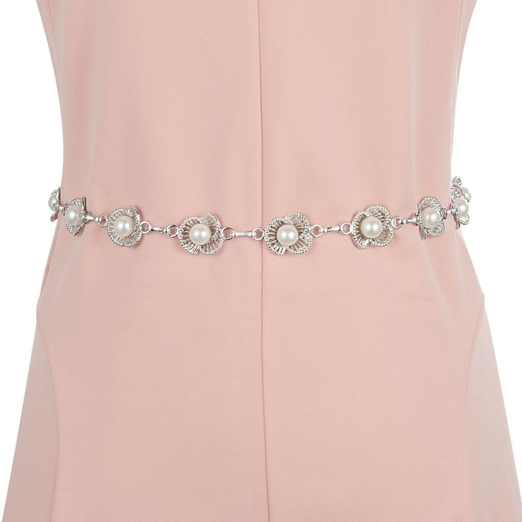 Type: Waist BeltFeatures: Pearls,RhinestoneMaterial: MetalMain Colour: Silver Ideal for: Dresses, Gowns, One Piece etc.Total Length of Belt (End to End): 118cm/46.5 inchLength of Pearls Part: 68cm/26.8 inchTail chain Part: 50cm/19.7 inch