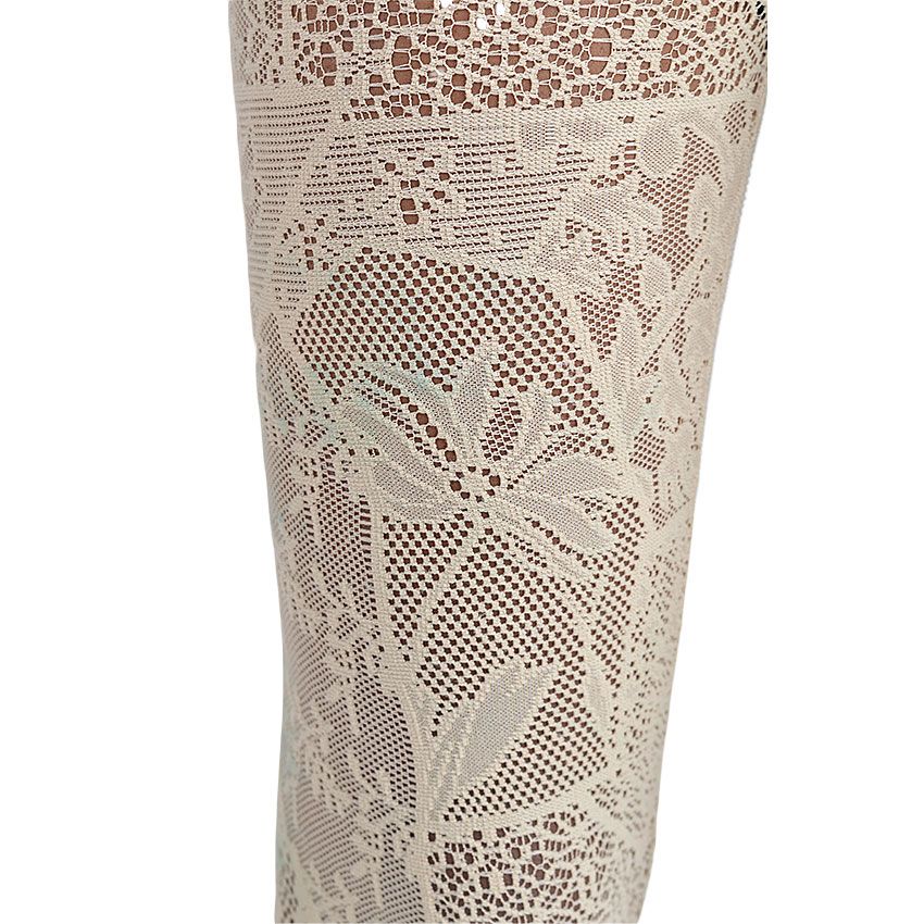The warp knit net is made from recycled yarn and features enduring charm of roses to create its floral pattern.