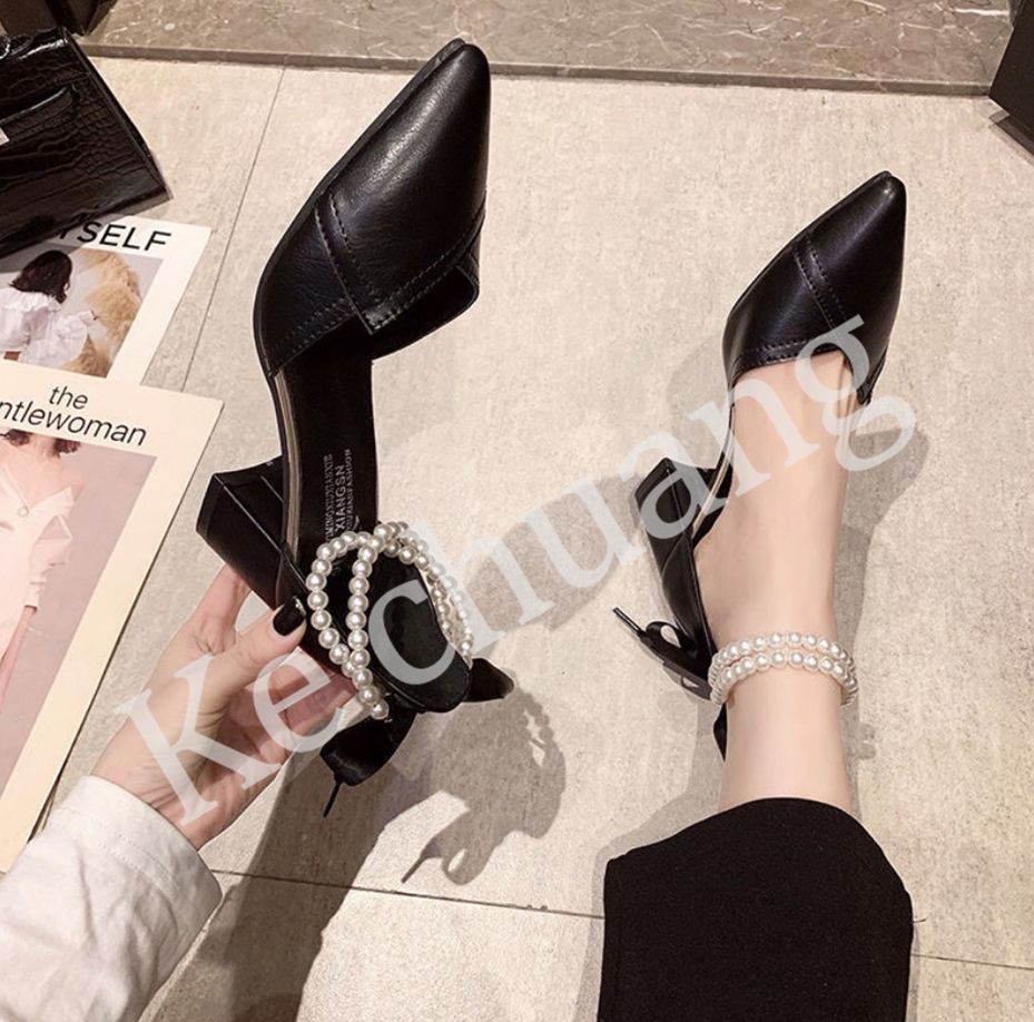 Buy Ladies Fashion Pearl High Heels (5cm)-Black in Nigeria