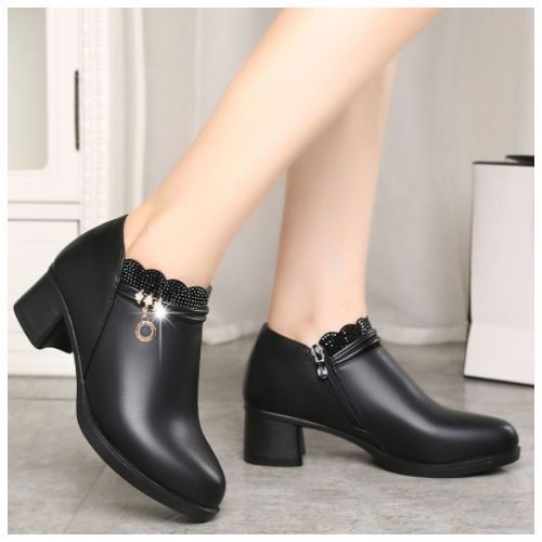 Buy Ladies Fashion Thick Heel Shoes-Black in Nigeria