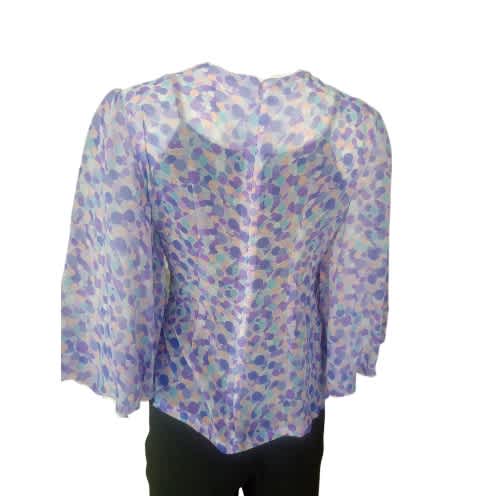 See-through printed organdy fabric blouse with 180 degrees flared sleeves and buttons for a woman who love fashion and love to stand out always in every occasions. to bring out the fashionable woman in you. A blouse to make you look stunning and stand out in your office and casual occasions. A trendy kind of blouse for a perfect fit and for a woman that loves fashion.Lbs-9411
