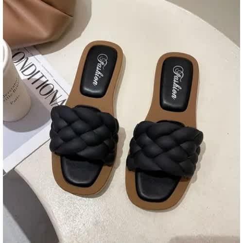 Buy Ladies Foreign Made Designer Braided Slip On Slippers/footwear Korean Style For Women Flat Sandal in Nigeria