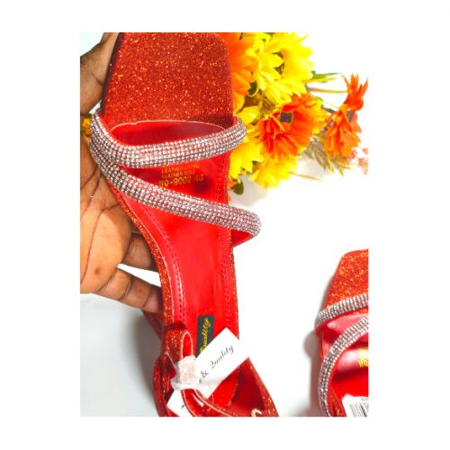 It is always a good idea to put on your best foot forward for an elegant eveining or outing affair. So its an even better idea to do that by wearing these stunning shoes.These high quality sandals are a very modern interpretation of fairytale glitter sandals.Dubbed as such by the quality, this pair is made from glitter-tond leather and has crystal embellished traps and square toes..Pair this beauty with a chic jumpsuit or a native lace outfit or a formal dress and get everyone looking at you at that party.