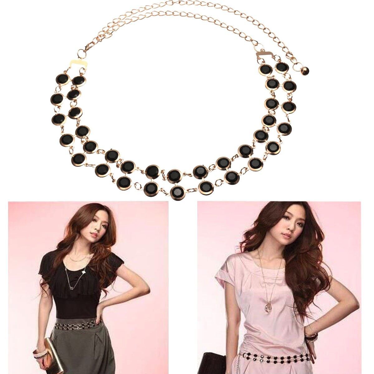 Two row black bead belt