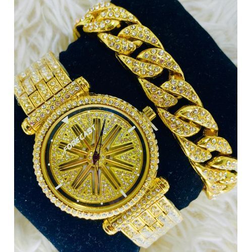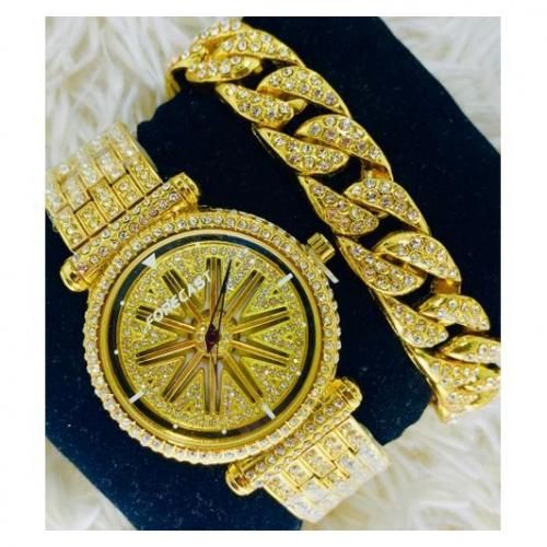 Lookworld ice stone mixed gold wristwatch, very fashionable, unique and for classy ladies. It can be worn on any outfit