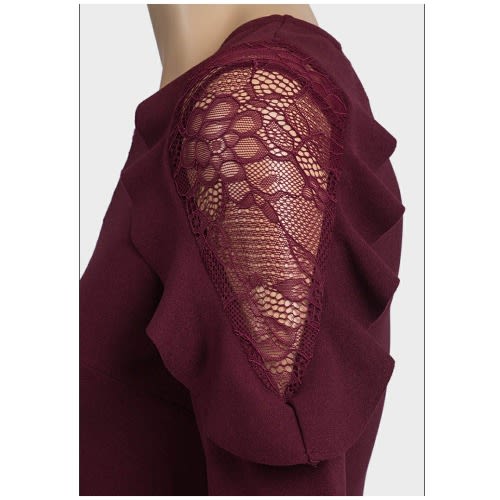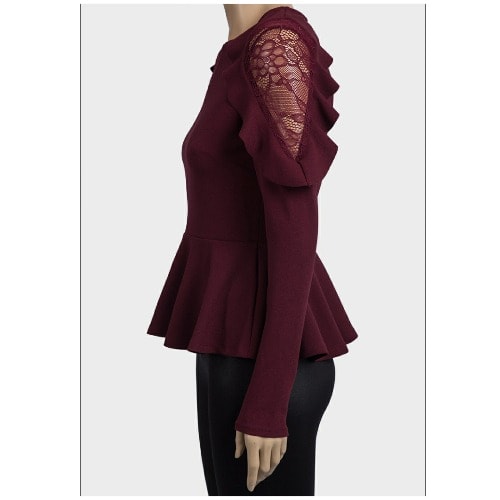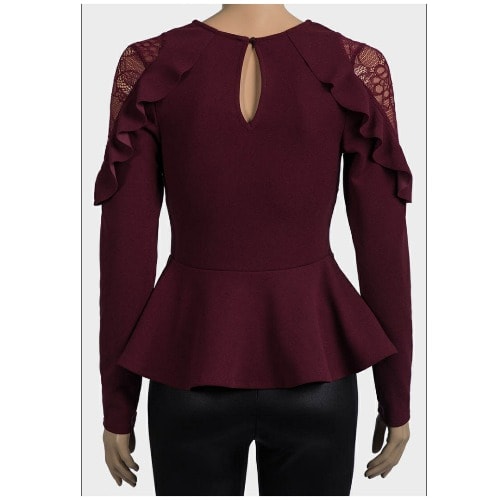 Buy Ladies Lace & Frill Peplum Top - Wine Color in Nigeria