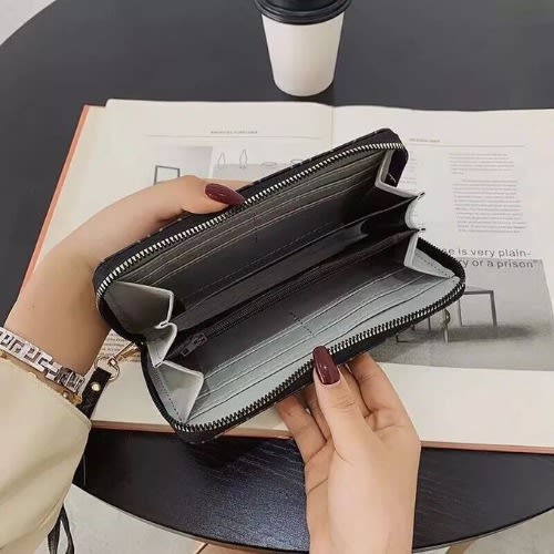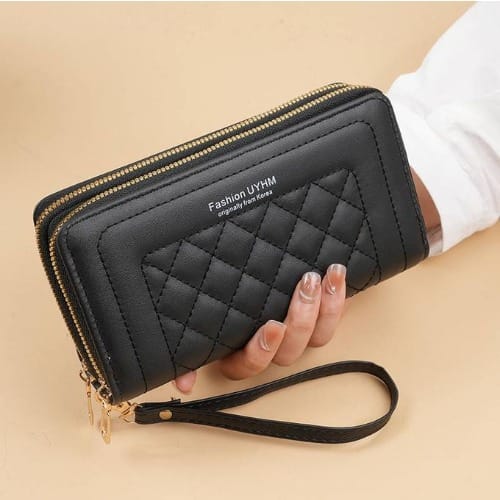 Buy Ladies Leather Double Zipper Clutch Casual Purse Long Wallet - Black in Nigeria