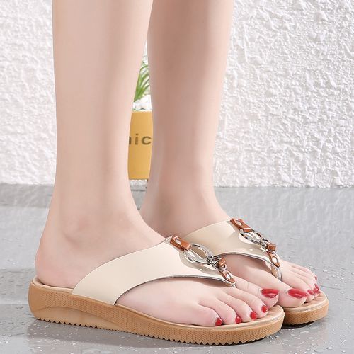 Buy Ladies Light Sandals Wedge Heels Large Size Flat Sandals And Slippers-Black in Nigeria