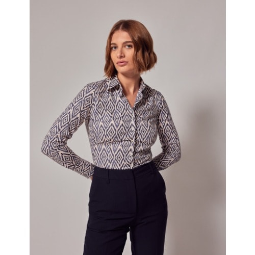 Cut from luxurious cotton fabric, this medium fitting shirt is closely cut at the bust and gently expands at the waist and hip. This stylish paisley shirt features a white dobby design and single cuffs. Team it with our pencil skirt or tapered trousers for a sophisticated office ensemble.
