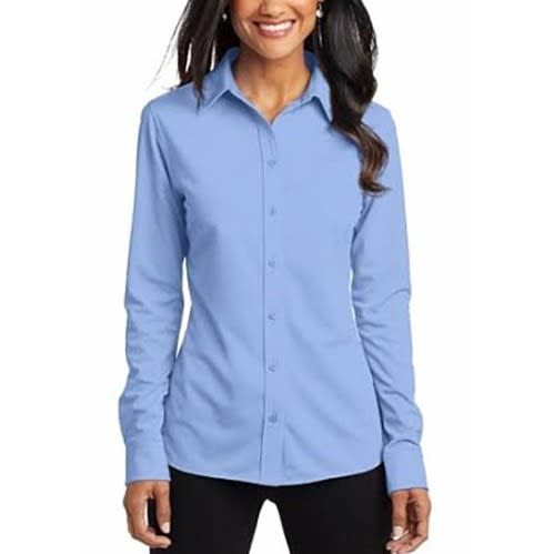 Women's Convertible Collar Long Sleeve Shirt - Blue