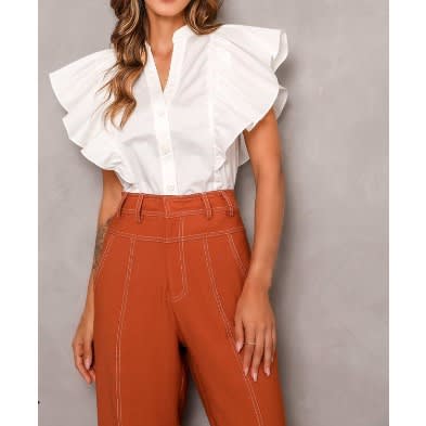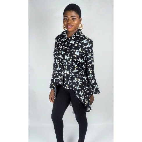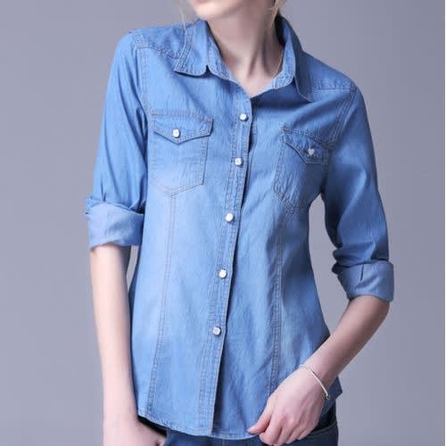 Ladies button through collared cornflower blue blouse with convertible collar and long sleeve to add more class to your wardrobe and make you look beautiful.