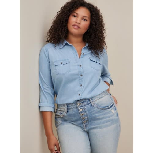 Beautifully crafted from 100% cotton, this women's stylish blue floral shirt is designed with three quarter length sleeves. This medium fitting shirt is closely cut at the bust and gently expands at the waist and hip, creating a semi fitted streamlined silhouette.