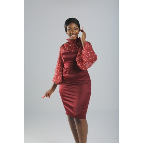 Buy Ladies Neck Line-Sleeves - Wine Multi Color- 9356 in Nigeria