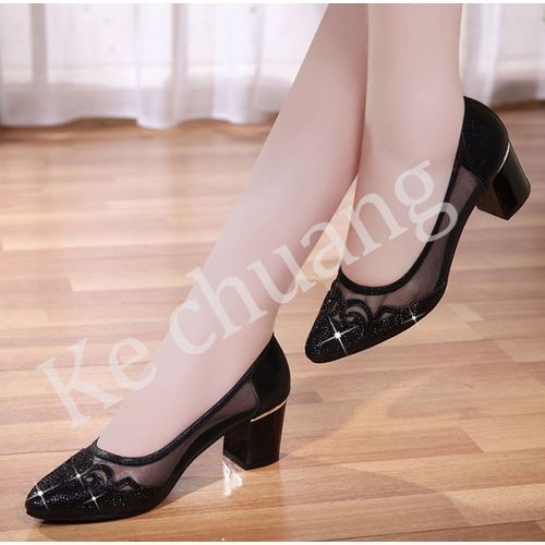 Buy Ladies Net Yarn Rhinestone Single Shoes-Black in Nigeria