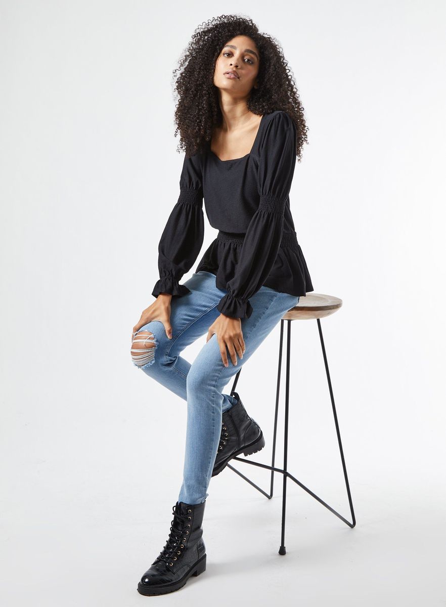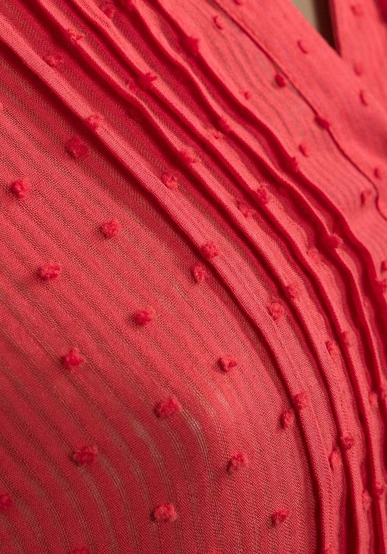 -Made from a semi-sheer striped cotton-Y-neckline-Button-through fastening -Pintuck detail to chest -Textured bobbles throughout-Long sleeves -Buttoned cuffs-Self-tie waistline-Regular fit-Colour: Red