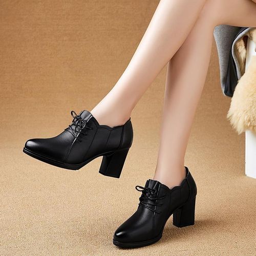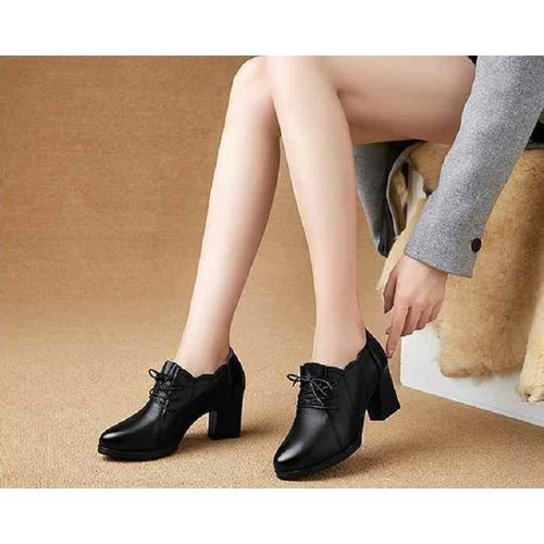 Buy Ladies Round Head Lace-up Work Shoes - Black in Nigeria