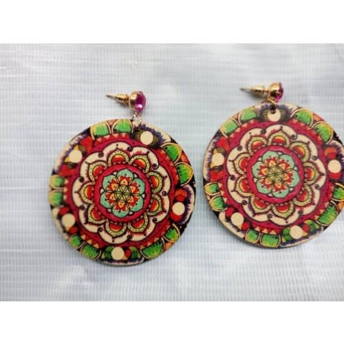 Buy Ladies Round Wooden Earrings - Multicolour in Nigeria