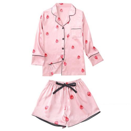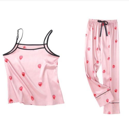 Womens Silky Pajamas ;Long Sleeve Printed Sleepwear Shirt Pants;Spaghetti Strap Top Shorts Set Nightwear;Ladies Satin Pajamas Set Loungewear;Womens Sleepwear Pajamas Home Loungewear