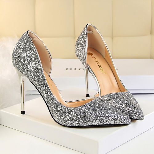 Buy Ladies Sequins Heels Wedding Pumpsl Dress Party Shoes Silver in Nigeria