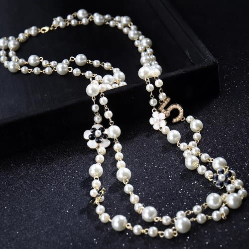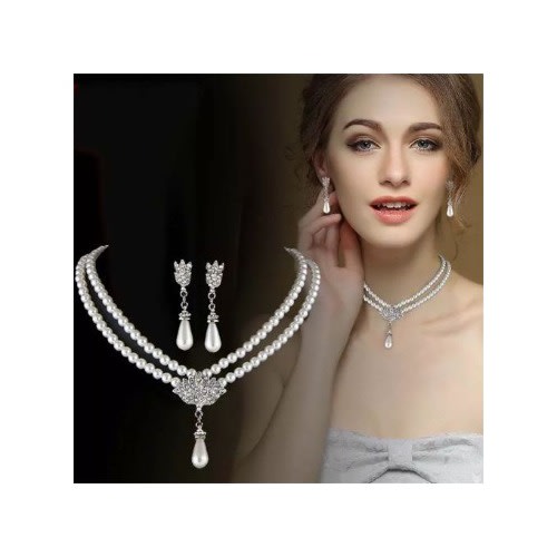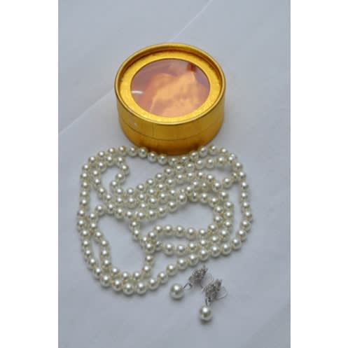Ladies Sophisticated Round Long Pearls With Earrings Lp-9448