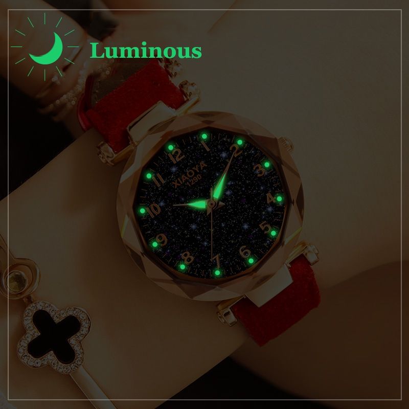 XIAOYA Fashion Women Star Sky Dial PU Leather Belt Quartz Wrist Watches(Grey)
