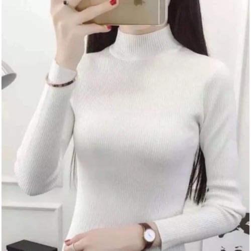 Buy Ladies Turtleneck Long Sleeve T-shirt - White in Nigeria