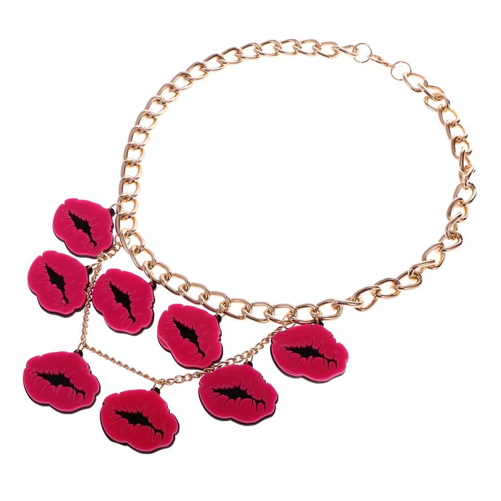 Material: Alloy,AcrylicColor: Gold Chain,Rose Red Lips PendantSingle Lip Pendant Size: Approx 3.8 x 2.7cm/ 1.5 x 1.06inchChain Length Approx. 56cm / 22inchWomen fashion lips pendant statement necklace