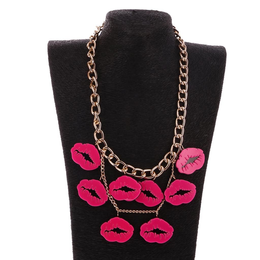 Women fashion lips pendant statement necklace