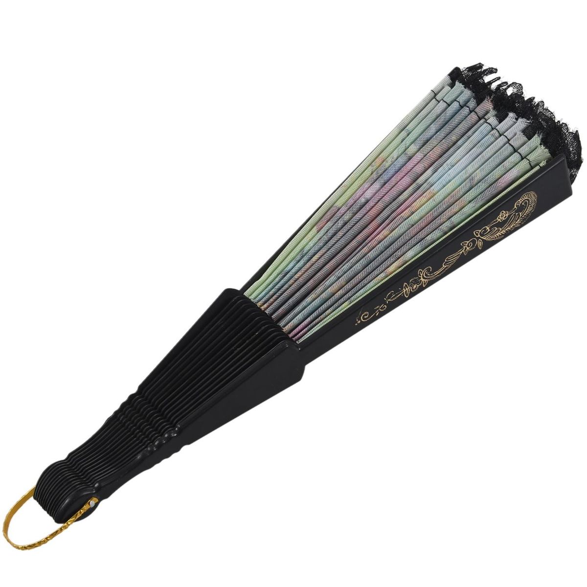 Lady flower Print Chinese Japanese Foldable Hand FanThis Hand Fan is constructed with plastic ribs and nylon.
